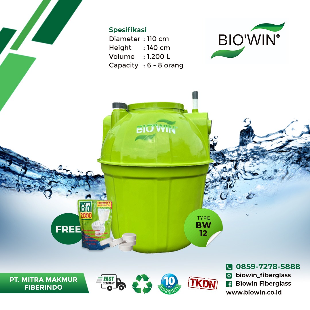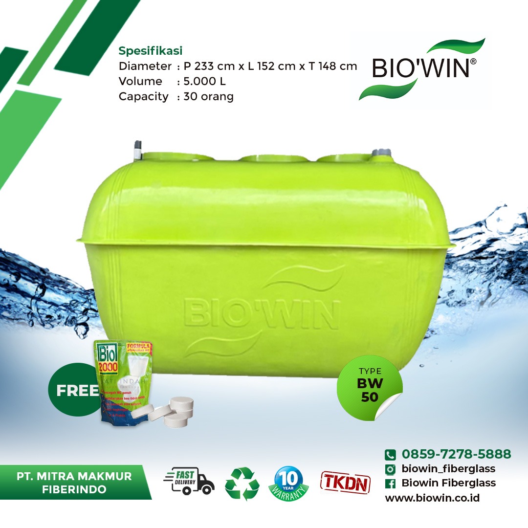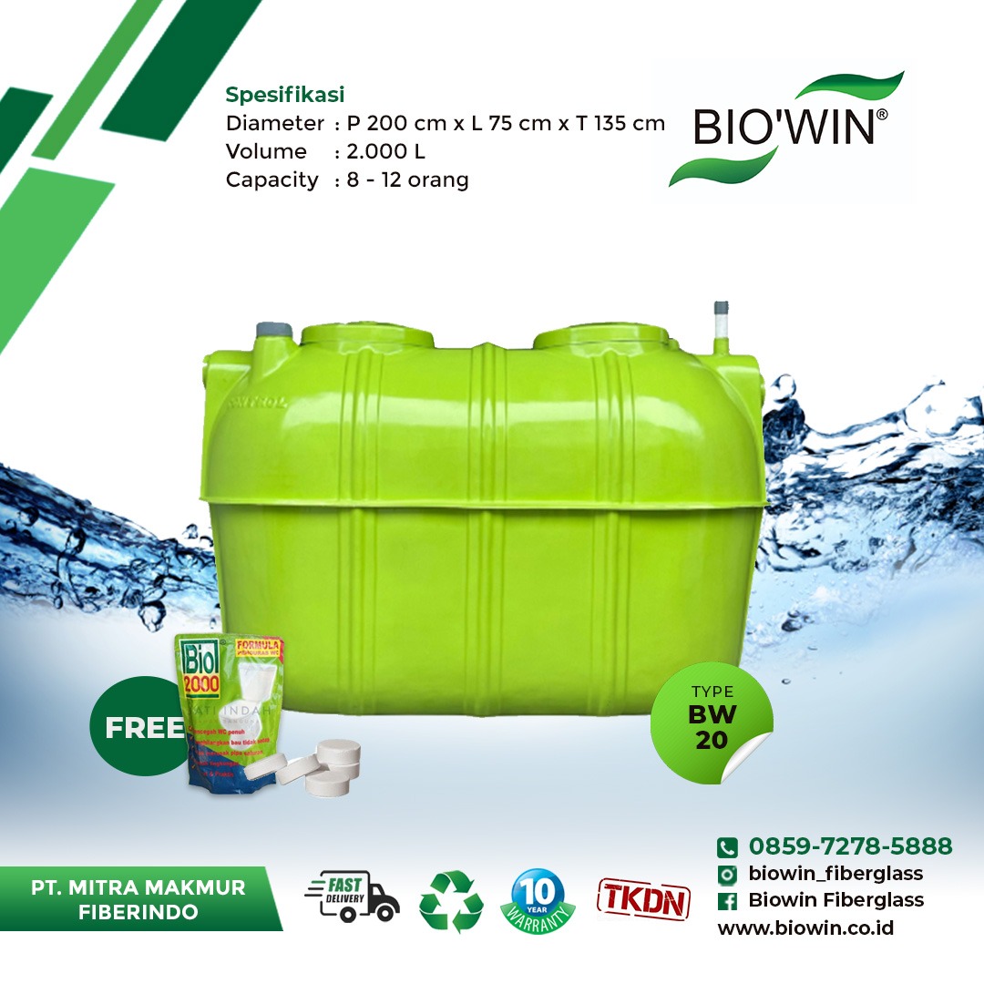 Septic tank bio merk Biowin terbuat dari bahan fiberglass berkualitas sehingga sangat kuat dan tahan lama, anti pecah, anti korosi dan anti sedot.